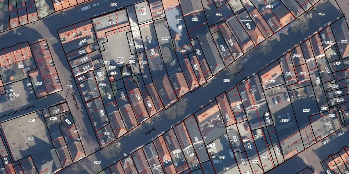 Het adres is gelegen op perceel 8747 in de sectie E en de kadastrale gemeente Amersfoort. De kadastrale aanduiding is aldus AMF00-E-8747. De gemiddelde perceelgrootte in Amersfoort is 960,23 m². Dit perceel is kleiner: de perceeloppervlakte bedraagt 369 m². Het kleinste perceel in de kadastrale gemeente is 0 m² groot. De grootste perceeloppervlakte is 1,12 km². Op het perceel zijn 2 adressen aanwezig. De huidige grenzen van het perceel zijn digitaal in de Basisregistratie Kadaster (BRK) geregistreerd op 24-04-2006.