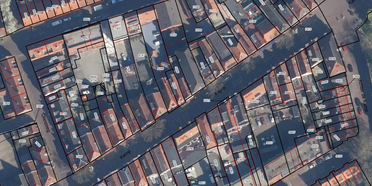 Het perceel waarop Kamp 64 staat heeft een oppervlakte van 107 m². Dit is een middelgroot perceel. De perceeloppervlakte wordt geregistreerd door het Kadaster. Gedetailleerde informatie over de maten van dit perceel kunt u vinden in het rapport Kadastrale kaart met maatvoering van Kamp 64.