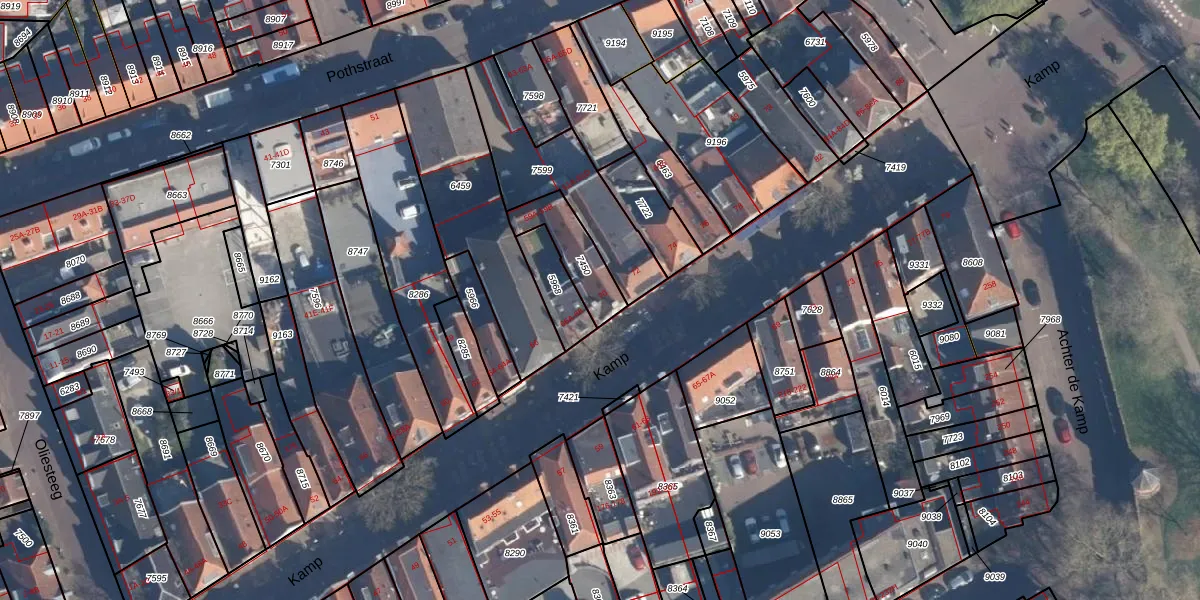 Het adres is gelegen op perceel 7450 in de sectie E en de kadastrale gemeente Amersfoort. De kadastrale aanduiding is aldus AMF00-E-7450. Het perceel is kleiner dan gemiddeld in Amersfoort. Het perceel is 150 m² groot, terwijl het gemiddelde ligt op 960,23 m². Het grootste perceel in de kadastrale gemeente is 1,12 km². Het kleinste perceel heeft een oppervlakte van 0 m². Op het perceel liggen in totaal 3 adressen. De huidige grenzen van het perceel zijn digitaal in de Basisregistratie Kadaster (BRK) geregistreerd op 19-09-1997.