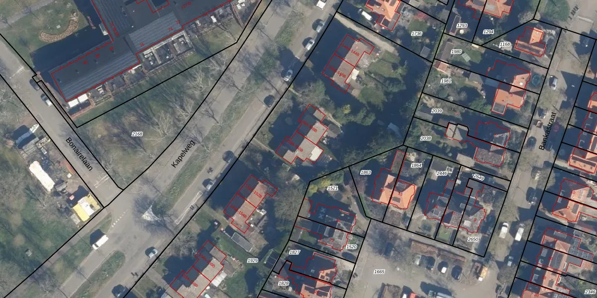 Het perceel waarop Kapelweg 150-B staat heeft een oppervlakte van 6245 m². Dit is een zeer groot perceel. De perceeloppervlakte wordt geregistreerd door het Kadaster. Gedetailleerde informatie over de maten van dit perceel kunt u vinden in het rapport Kadastrale kaart met maatvoering van Kapelweg 150-B.
