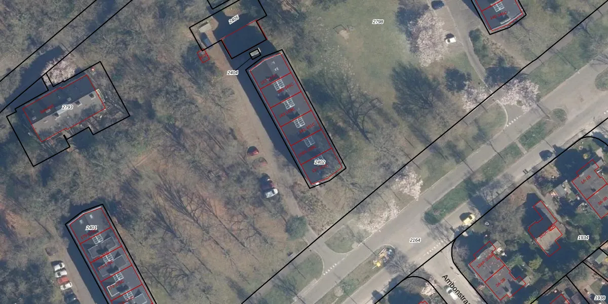 Het adres is gelegen op perceel 2402 in de sectie F en de kadastrale gemeente Amersfoort. De kadastrale aanduiding is aldus AMF00-F-2402. Het perceel is 613 m² groot. Dat is kleiner dan de gemiddelde perceeloppervlakte in Amersfoort, dat op 959,94 m² ligt. Het kleinste perceel in de kadastrale gemeente is 0 m² groot. De grootste perceeloppervlakte is 1,12 km². Op het perceel liggen in totaal 23 adressen. De laatste wijziging in het de Basisregistratie Kadaster (BRK) was op 30-09-2009.