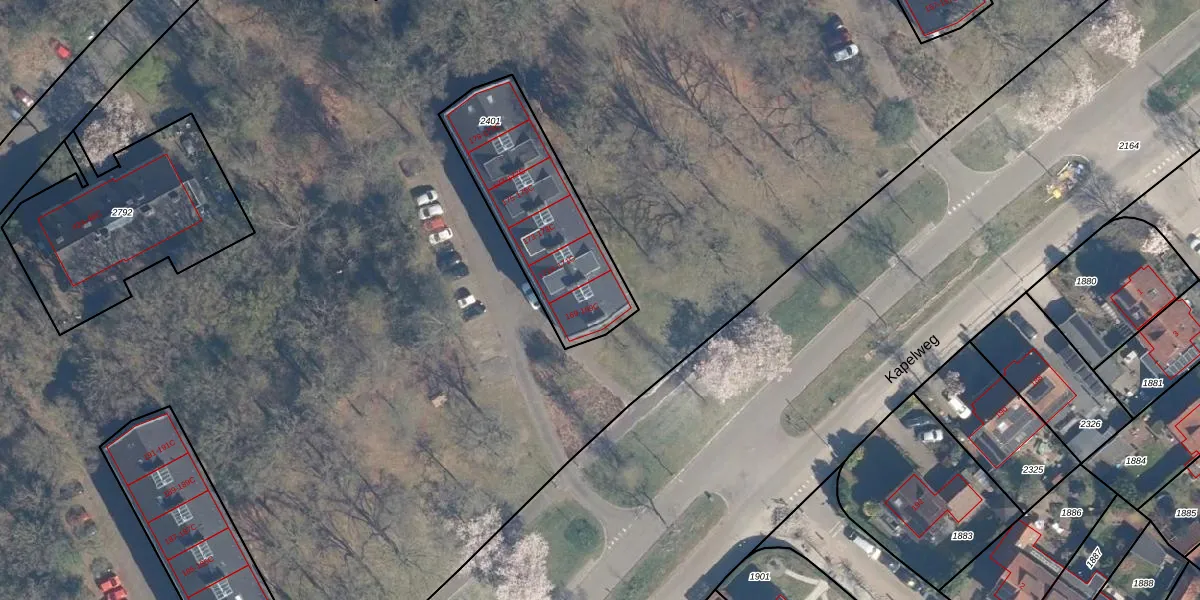 Kapelweg 169 is gelegen op kadastraal perceel AMF00F2401. Deze kadastrale aanduiding is uniek en wordt gebruikt door het Kadaster om eigendomsrechten en andere zakelijke rechten vast te leggen. Het perceel maakt onderdeel uit van de kadastrale gemeente Amersfoort.