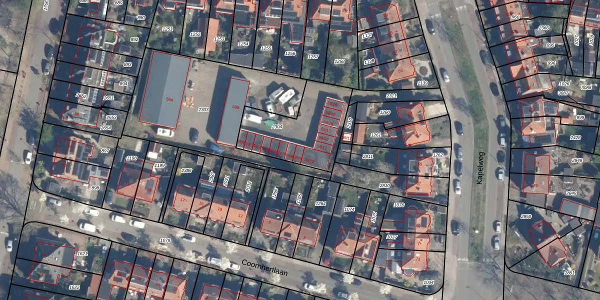 Het perceel waarop Kapelweg 59-9 staat heeft een oppervlakte van 704 m². Dit is een groot perceel. De perceeloppervlakte wordt geregistreerd door het Kadaster. Gedetailleerde informatie over de maten van dit perceel kunt u vinden in het rapport Kadastrale kaart met maatvoering van Kapelweg 59-9.