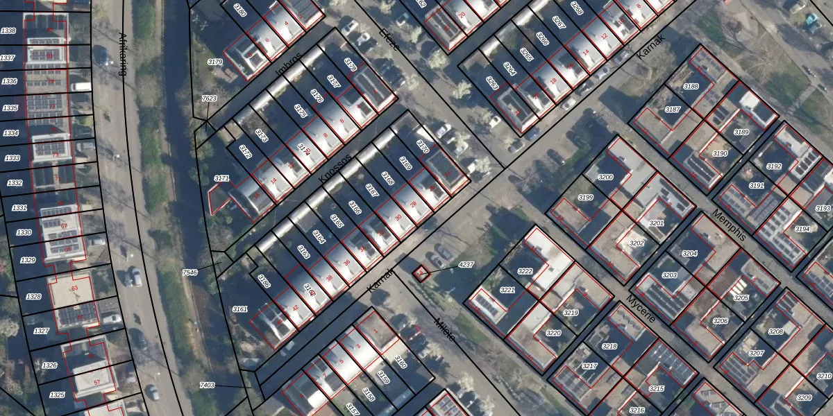 Het perceel waarop Karnak 28 staat heeft een oppervlakte van 123 m². Dit is een middelgroot perceel. De perceeloppervlakte wordt geregistreerd door het Kadaster. Gedetailleerde informatie over de maten van dit perceel kunt u vinden in het rapport Kadastrale kaart met maatvoering van Karnak 28.