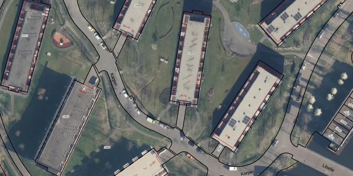 Het perceel waarop Karper 60 staat heeft een oppervlakte van 875 m². Dit is een groot perceel. De perceeloppervlakte wordt geregistreerd door het Kadaster. Gedetailleerde informatie over de maten van dit perceel kunt u vinden in het rapport Kadastrale kaart met maatvoering van Karper 60.