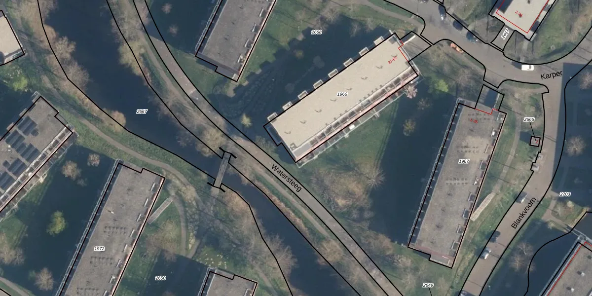 Het perceel waarop Karper 67 staat heeft een oppervlakte van 915 m². Dit is een groot perceel. De perceeloppervlakte wordt geregistreerd door het Kadaster. Gedetailleerde informatie over de maten van dit perceel kunt u vinden in het rapport Kadastrale kaart met maatvoering van Karper 67.