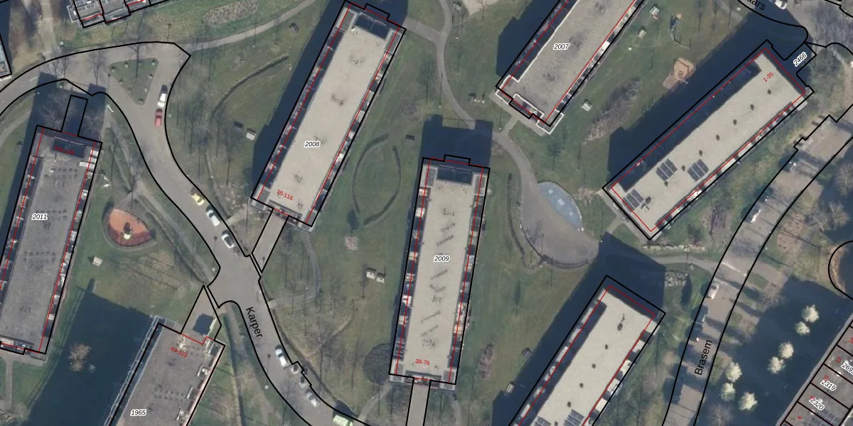 Het perceel waarop Karper 72 staat heeft een oppervlakte van 875 m². Dit is een groot perceel. De perceeloppervlakte wordt geregistreerd door het Kadaster. Gedetailleerde informatie over de maten van dit perceel kunt u vinden in het rapport Kadastrale kaart met maatvoering van Karper 72.