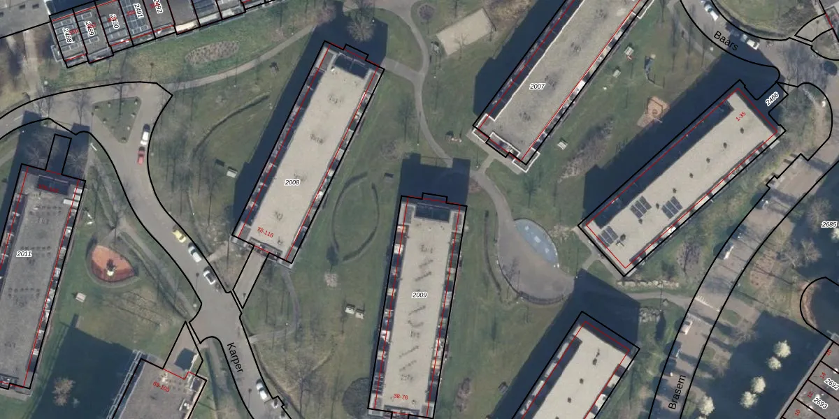 Het perceel waarop Karper 76 staat heeft een oppervlakte van 875 m². Dit is een groot perceel. De perceeloppervlakte wordt geregistreerd door het Kadaster. Gedetailleerde informatie over de maten van dit perceel kunt u vinden in het rapport Kadastrale kaart met maatvoering van Karper 76.