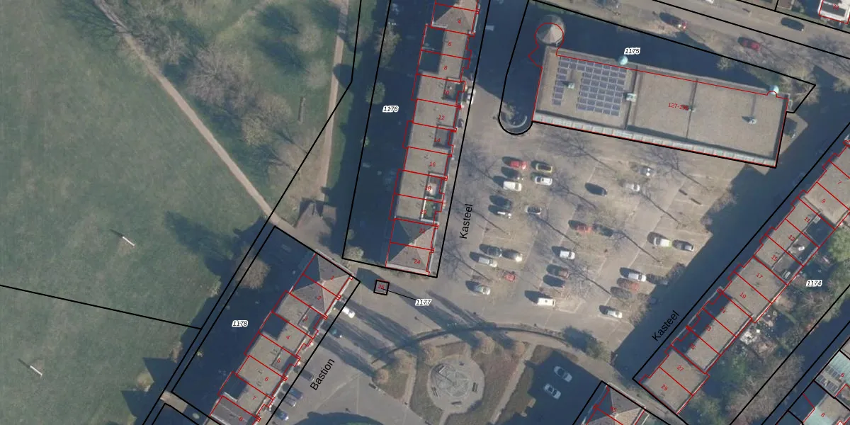 Het perceel waarop Kasteel 20 staat heeft een oppervlakte van 1600 m². Dit is een zeer groot perceel. De perceeloppervlakte wordt geregistreerd door het Kadaster. Gedetailleerde informatie over de maten van dit perceel kunt u vinden in het rapport Kadastrale kaart met maatvoering van Kasteel 20.