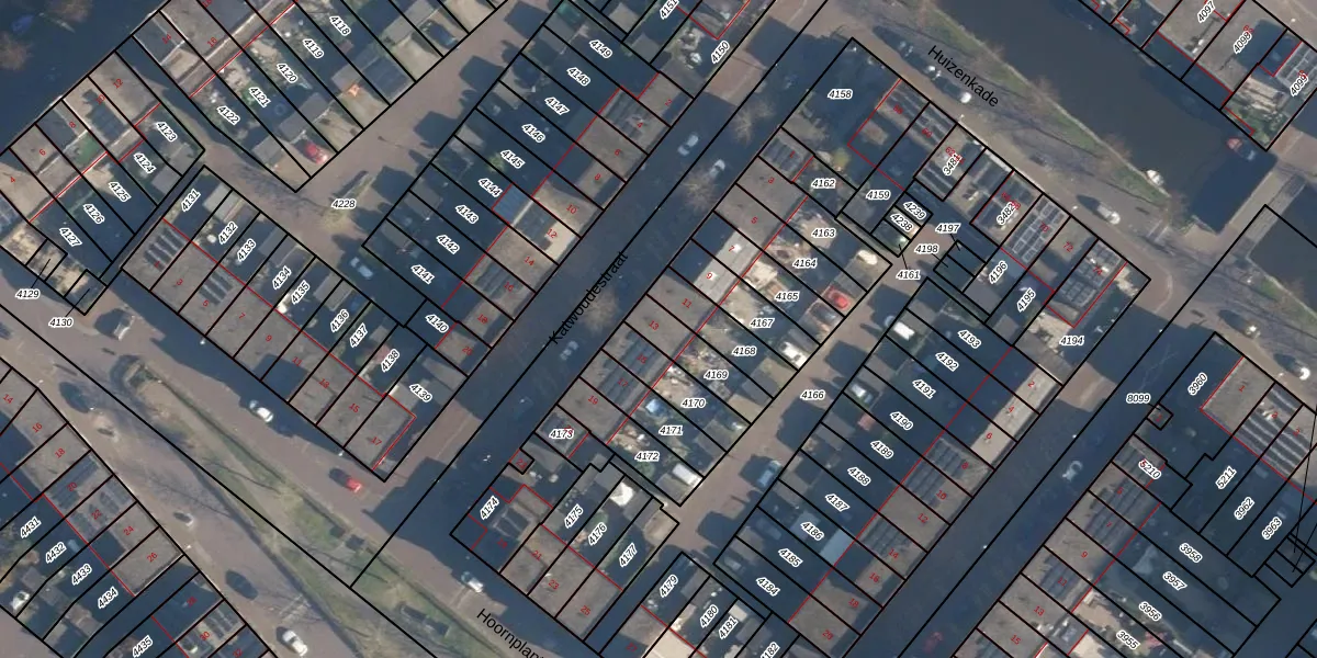 Katwoudestraat 13 is gelegen op kadastraal perceel HLD02B4169. Deze kadastrale aanduiding is uniek en wordt gebruikt door het Kadaster om eigendomsrechten en andere zakelijke rechten vast te leggen. Het perceel maakt onderdeel uit van de kadastrale gemeente Hoogland.
