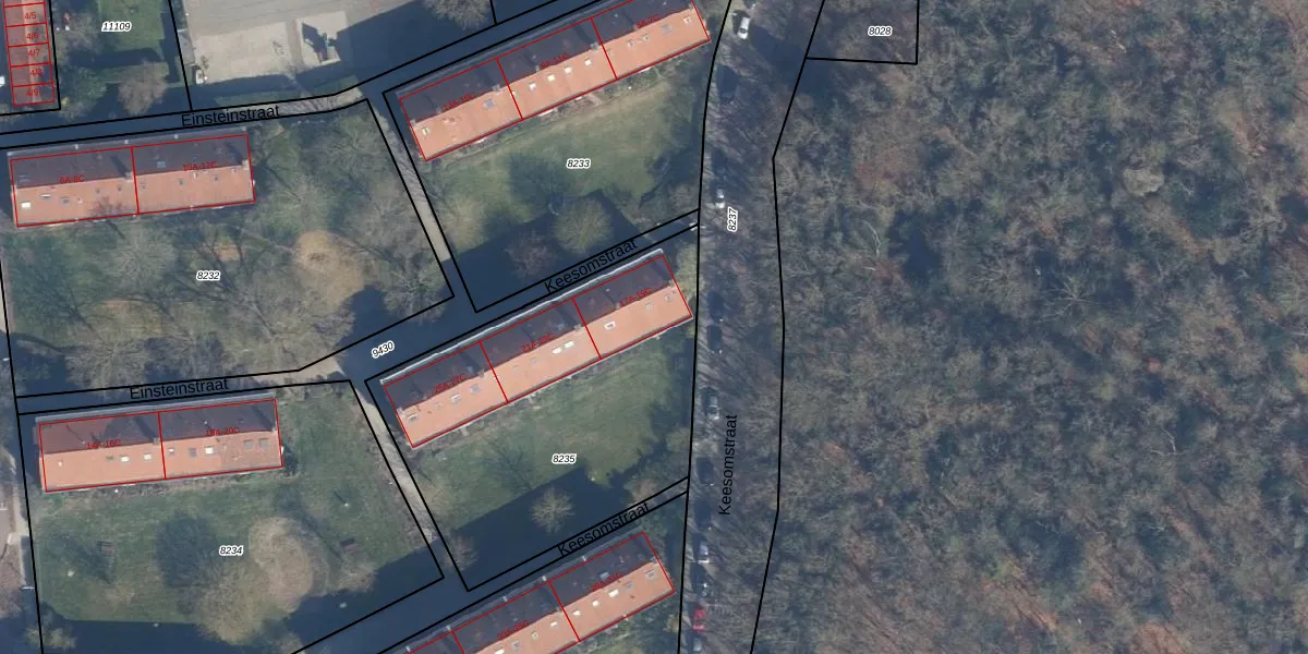 Het perceel waarop Keesomstraat 19-C staat heeft een oppervlakte van 1650 m². Dit is een zeer groot perceel. De perceeloppervlakte wordt geregistreerd door het Kadaster. Gedetailleerde informatie over de maten van dit perceel kunt u vinden in het rapport Kadastrale kaart met maatvoering van Keesomstraat 19-C.