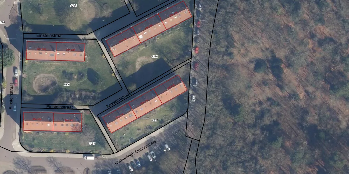 Het perceel waarop Keesomstraat 41-B staat heeft een oppervlakte van 1285 m². Dit is een zeer groot perceel. De perceeloppervlakte wordt geregistreerd door het Kadaster. Gedetailleerde informatie over de maten van dit perceel kunt u vinden in het rapport Kadastrale kaart met maatvoering van Keesomstraat 41-B.