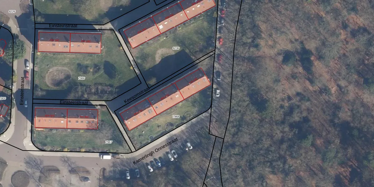 Het perceel waarop Keesomstraat 43-C staat heeft een oppervlakte van 1285 m². Dit is een zeer groot perceel. De perceeloppervlakte wordt geregistreerd door het Kadaster. Gedetailleerde informatie over de maten van dit perceel kunt u vinden in het rapport Kadastrale kaart met maatvoering van Keesomstraat 43-C.