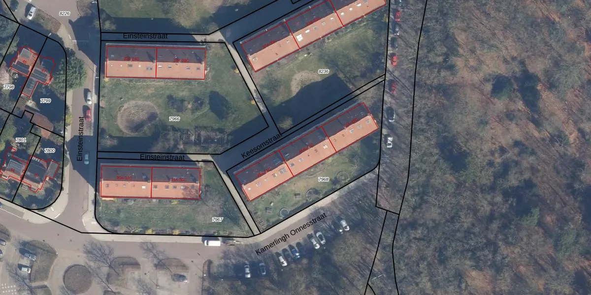 Het perceel waarop Keesomstraat 45-A staat heeft een oppervlakte van 1285 m². Dit is een zeer groot perceel. De perceeloppervlakte wordt geregistreerd door het Kadaster. Gedetailleerde informatie over de maten van dit perceel kunt u vinden in het rapport Kadastrale kaart met maatvoering van Keesomstraat 45-A.