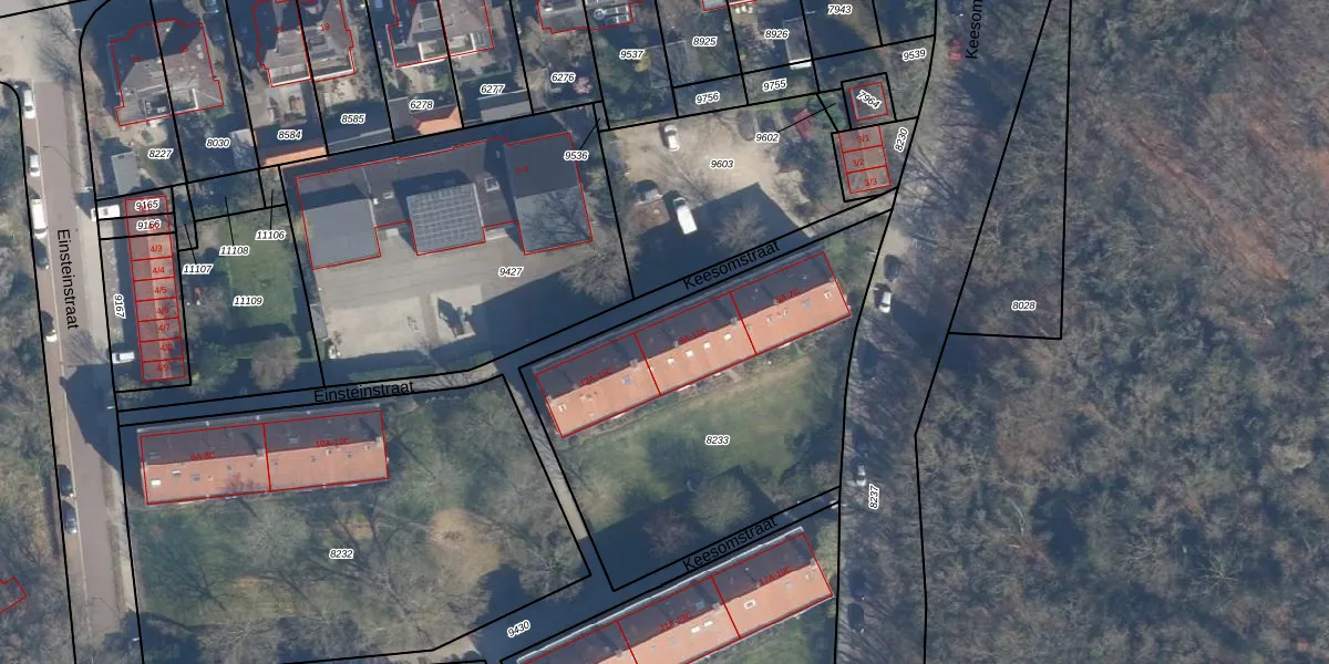 Keesomstraat 9-A is gelegen op kadastraal perceel AMF00B8233. Deze kadastrale aanduiding is uniek en wordt gebruikt door het Kadaster om eigendomsrechten en andere zakelijke rechten vast te leggen. Het perceel maakt onderdeel uit van de kadastrale gemeente Amersfoort.