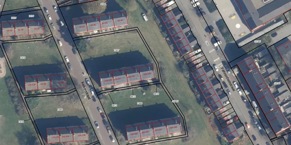 Het perceel waarop Kelvinstraat 16-C staat heeft een oppervlakte van 1700 m². Dit is een zeer groot perceel. De perceeloppervlakte wordt geregistreerd door het Kadaster. Gedetailleerde informatie over de maten van dit perceel kunt u vinden in het rapport Kadastrale kaart met maatvoering van Kelvinstraat 16-C.
