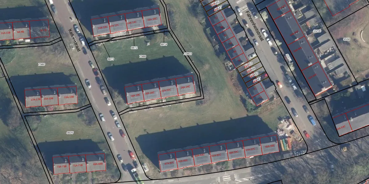 Het perceel waarop Kelvinstraat 24-A staat heeft een oppervlakte van 1760 m². Dit is een zeer groot perceel. De perceeloppervlakte wordt geregistreerd door het Kadaster. Gedetailleerde informatie over de maten van dit perceel kunt u vinden in het rapport Kadastrale kaart met maatvoering van Kelvinstraat 24-A.