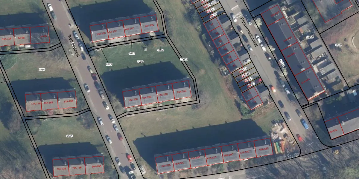 Het perceel waarop Kelvinstraat 24-C staat heeft een oppervlakte van 1760 m². Dit is een zeer groot perceel. De perceeloppervlakte wordt geregistreerd door het Kadaster. Gedetailleerde informatie over de maten van dit perceel kunt u vinden in het rapport Kadastrale kaart met maatvoering van Kelvinstraat 24-C.