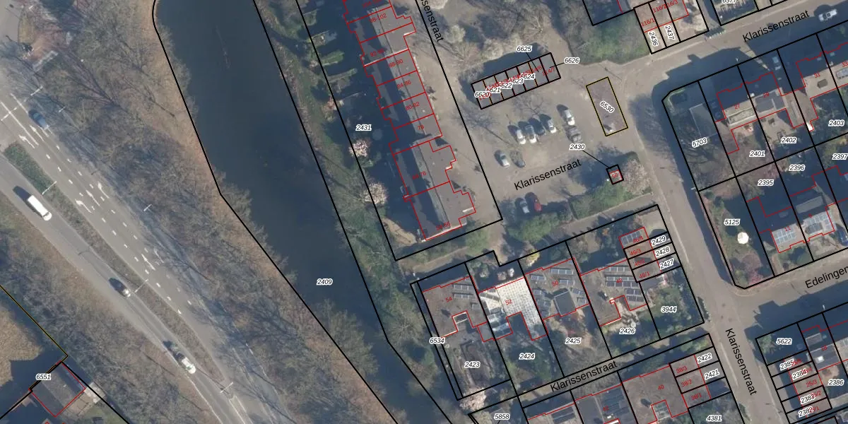 Het perceel waarop Klarissenstraat 66 staat heeft een oppervlakte van 1784 m². Dit is een zeer groot perceel. De perceeloppervlakte wordt geregistreerd door het Kadaster. Gedetailleerde informatie over de maten van dit perceel kunt u vinden in het rapport Kadastrale kaart met maatvoering van Klarissenstraat 66.