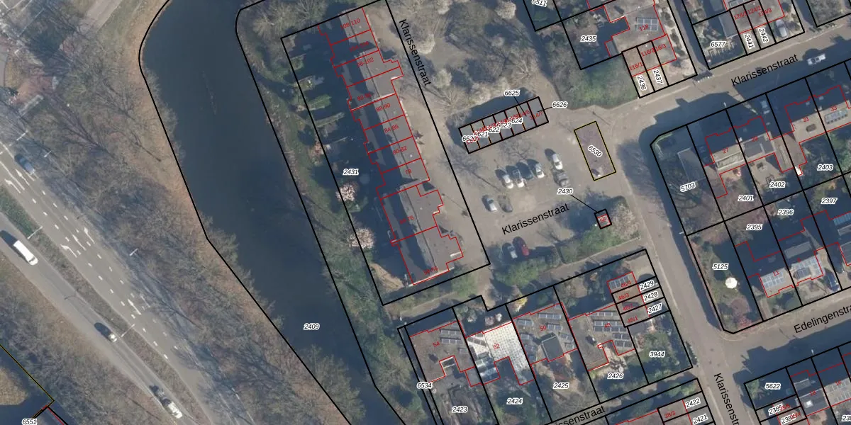 Het perceel waarop Klarissenstraat 68 staat heeft een oppervlakte van 1784 m². Dit is een zeer groot perceel. De perceeloppervlakte wordt geregistreerd door het Kadaster. Gedetailleerde informatie over de maten van dit perceel kunt u vinden in het rapport Kadastrale kaart met maatvoering van Klarissenstraat 68.