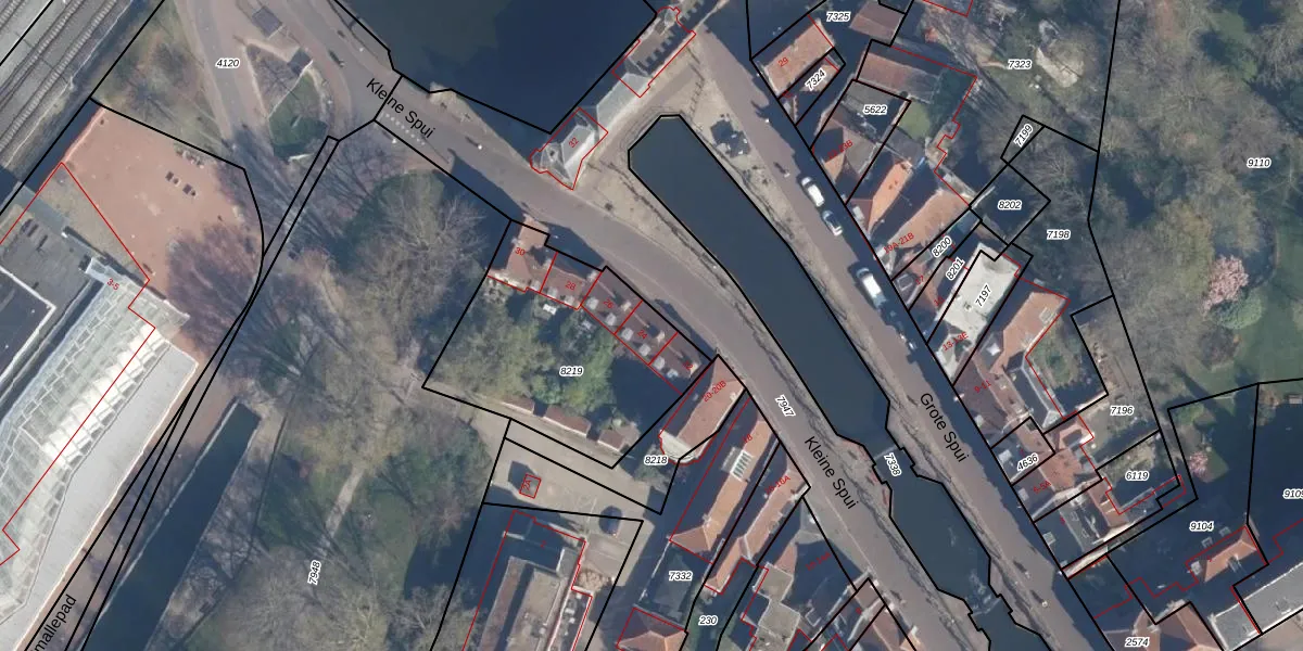 Het perceel waarop Kleine Spui 24 staat heeft een oppervlakte van 900 m². Dit is een groot perceel. De perceeloppervlakte wordt geregistreerd door het Kadaster. Gedetailleerde informatie over de maten van dit perceel kunt u vinden in het rapport Kadastrale kaart met maatvoering van Kleine Spui 24.