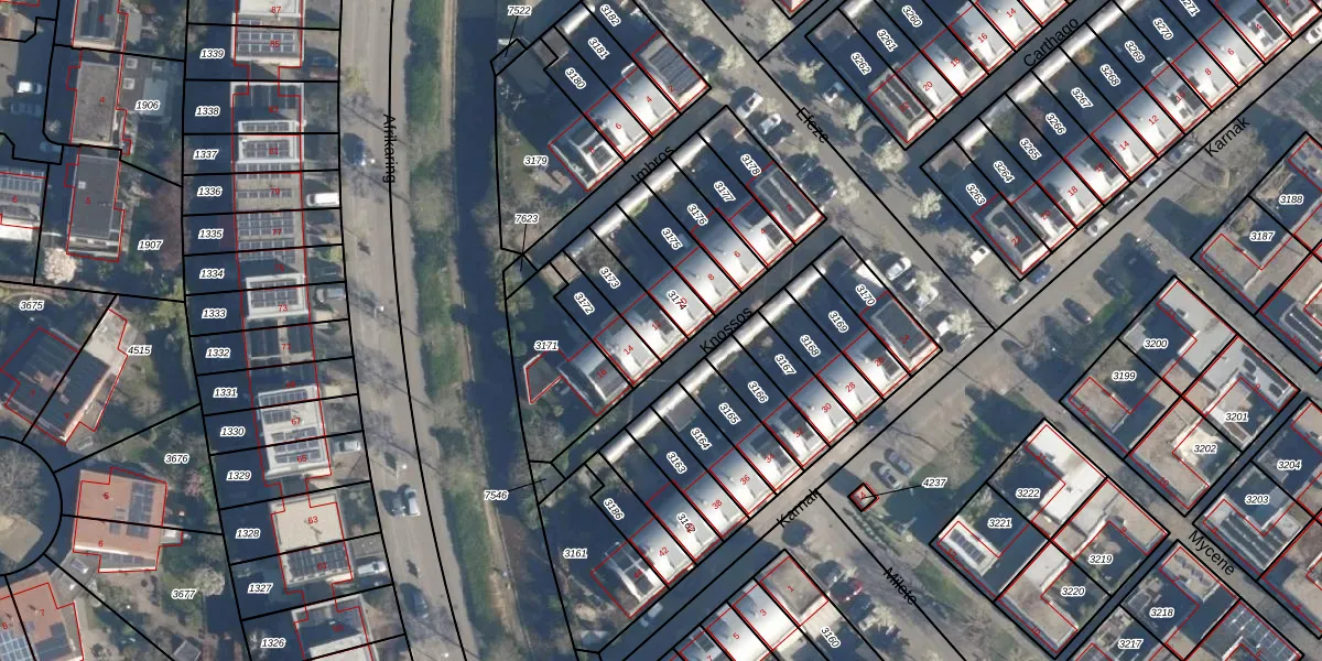 Het perceel waarop Knossos 12 staat heeft een oppervlakte van 123 m². Dit is een middelgroot perceel. De perceeloppervlakte wordt geregistreerd door het Kadaster. Gedetailleerde informatie over de maten van dit perceel kunt u vinden in het rapport Kadastrale kaart met maatvoering van Knossos 12.