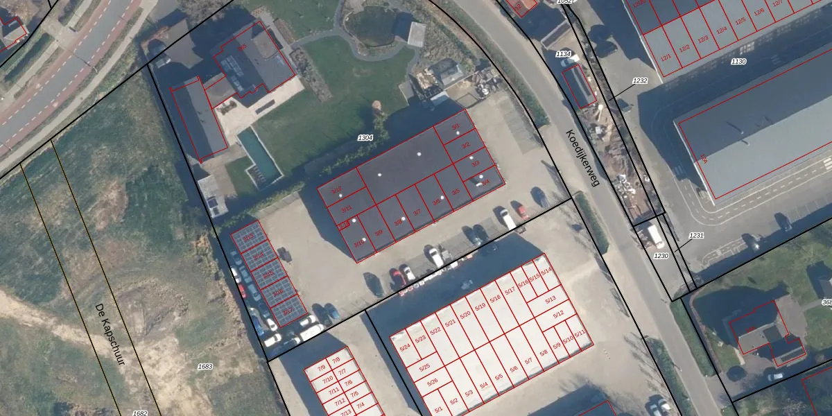 Het perceel waarop Koedijkerweg 3-7 staat heeft een oppervlakte van 5935 m². Dit is een zeer groot perceel. De perceeloppervlakte wordt geregistreerd door het Kadaster. Gedetailleerde informatie over de maten van dit perceel kunt u vinden in het rapport Kadastrale kaart met maatvoering van Koedijkerweg 3-7.