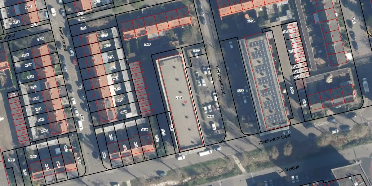 Het perceel waarop Koekoekstraat 24 staat heeft een oppervlakte van 830 m². Dit is een groot perceel. De perceeloppervlakte wordt geregistreerd door het Kadaster. Gedetailleerde informatie over de maten van dit perceel kunt u vinden in het rapport Kadastrale kaart met maatvoering van Koekoekstraat 24.