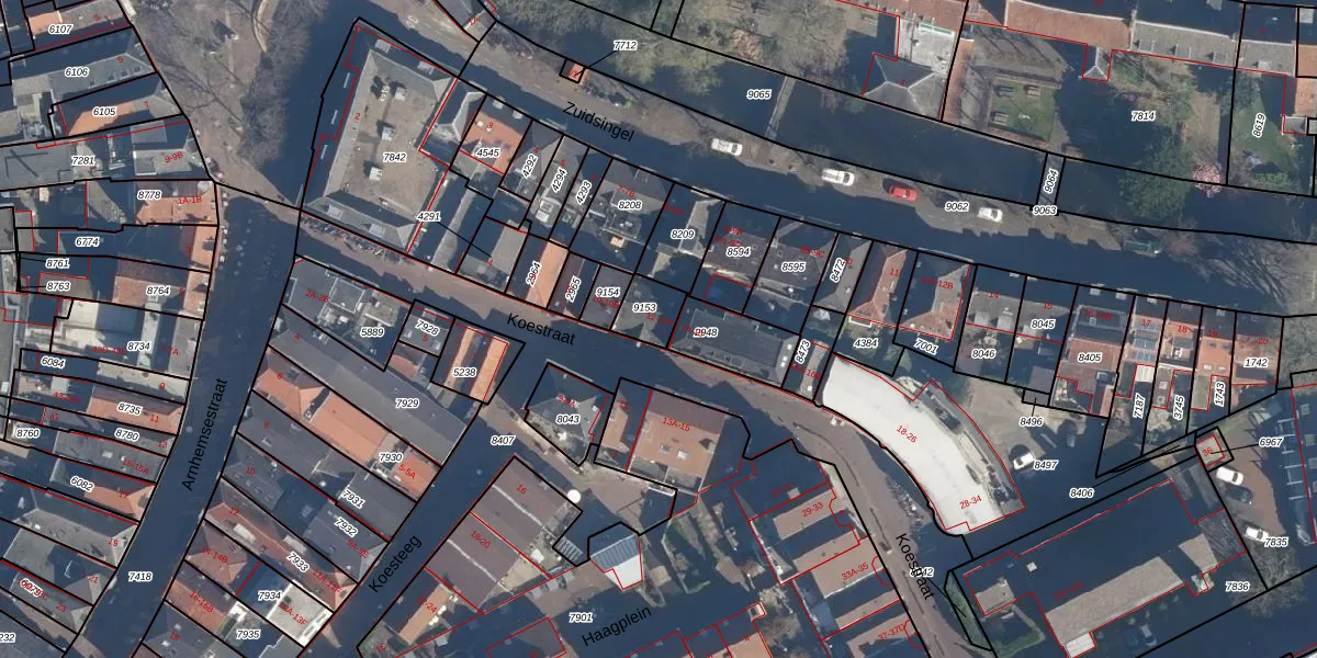 Het perceel waarop Koestraat 12 staat heeft een oppervlakte van 83 m². Dit is een klein perceel. De perceeloppervlakte wordt geregistreerd door het Kadaster. Gedetailleerde informatie over de maten van dit perceel kunt u vinden in het rapport Kadastrale kaart met maatvoering van Koestraat 12.