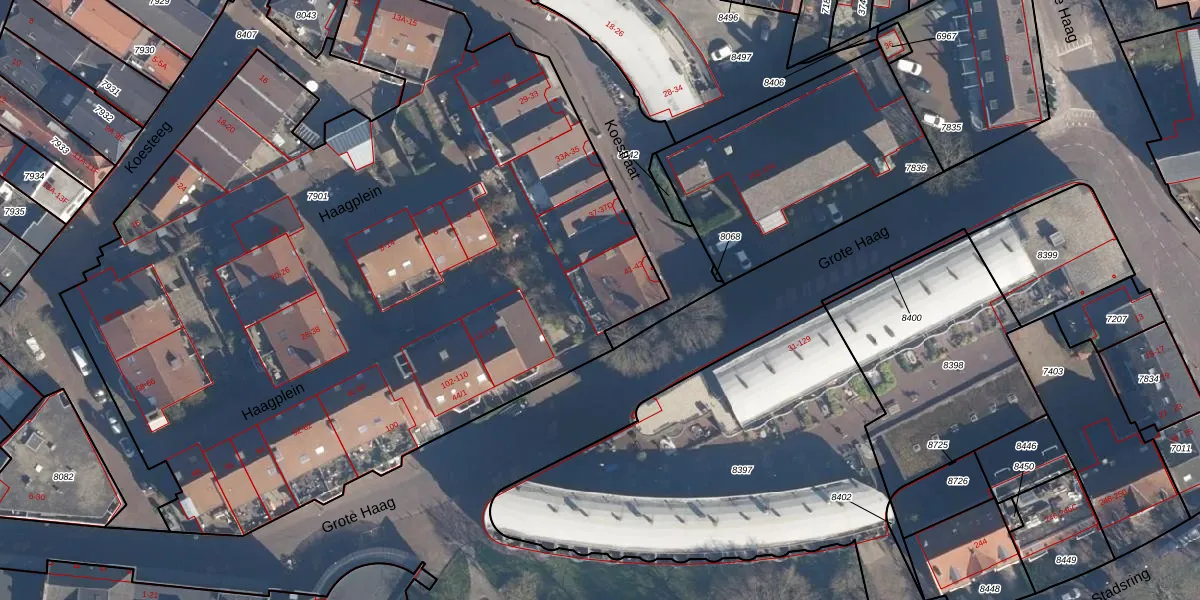 Het perceel waarop Koestraat 41-E staat heeft een oppervlakte van 5428 m². Dit is een zeer groot perceel. De perceeloppervlakte wordt geregistreerd door het Kadaster. Gedetailleerde informatie over de maten van dit perceel kunt u vinden in het rapport Kadastrale kaart met maatvoering van Koestraat 41-E.