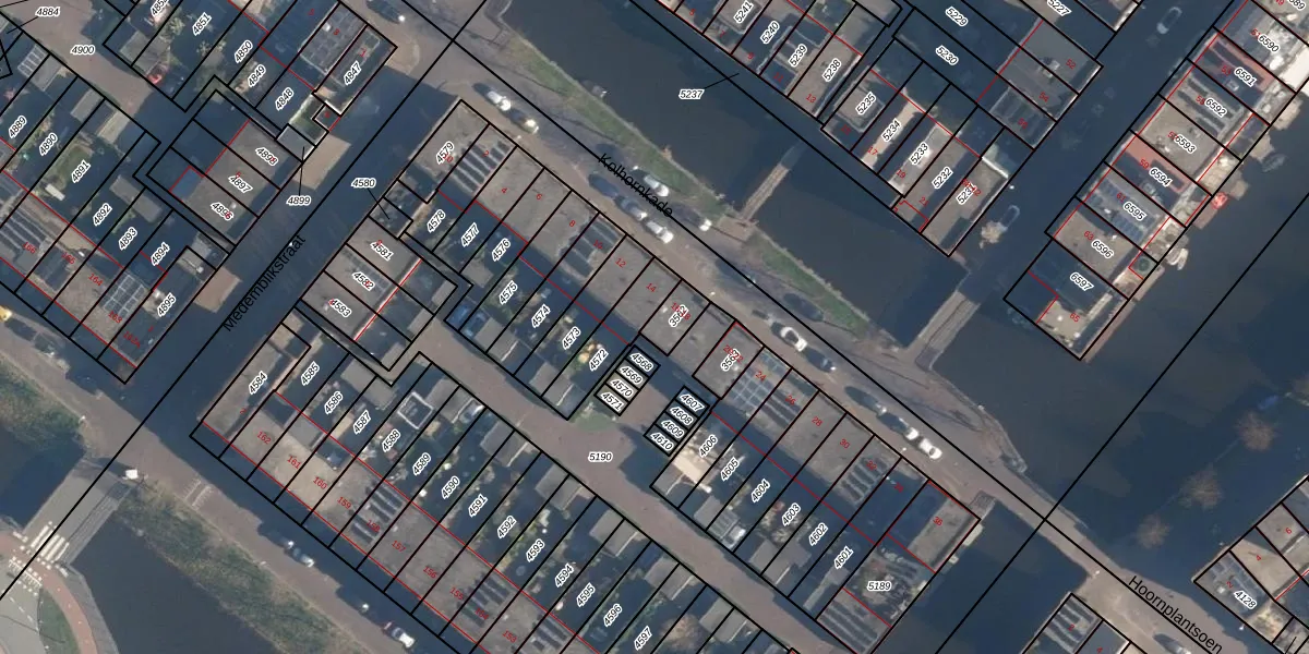 Kolhornkade 18 is gelegen op kadastraal perceel HLD02B3562. Deze kadastrale aanduiding is uniek en wordt gebruikt door het Kadaster om eigendomsrechten en andere zakelijke rechten vast te leggen. Het perceel maakt onderdeel uit van de kadastrale gemeente Hoogland.
