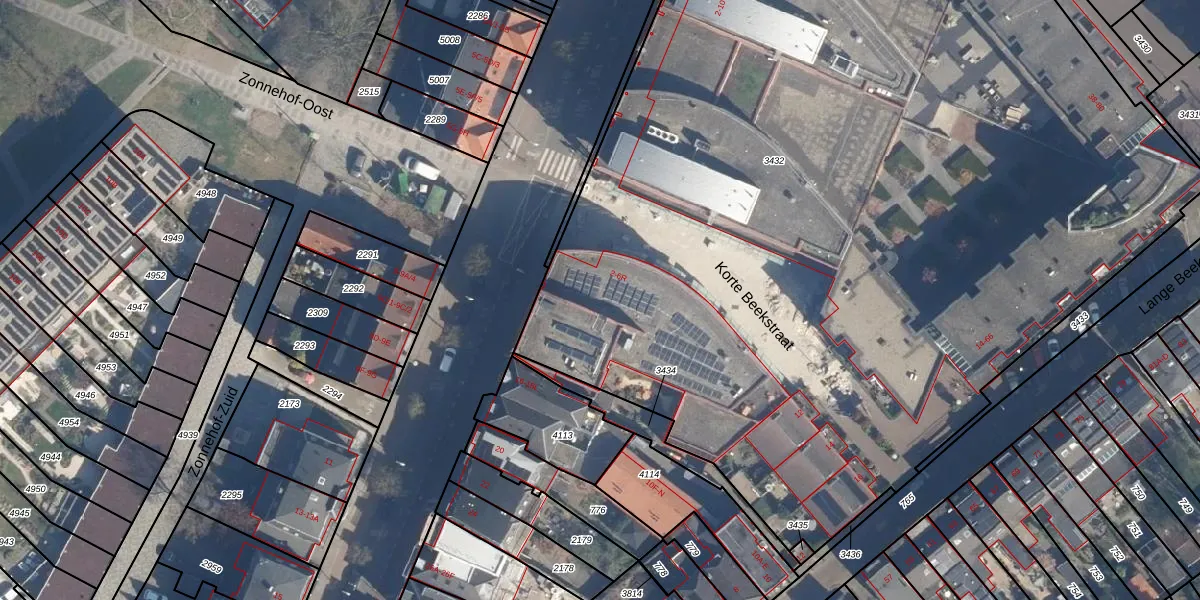 Het perceel waarop Korte Beekstraat 4-L staat heeft een oppervlakte van 8194 m². Dit is een zeer groot perceel. De perceeloppervlakte wordt geregistreerd door het Kadaster. Gedetailleerde informatie over de maten van dit perceel kunt u vinden in het rapport Kadastrale kaart met maatvoering van Korte Beekstraat 4-L.