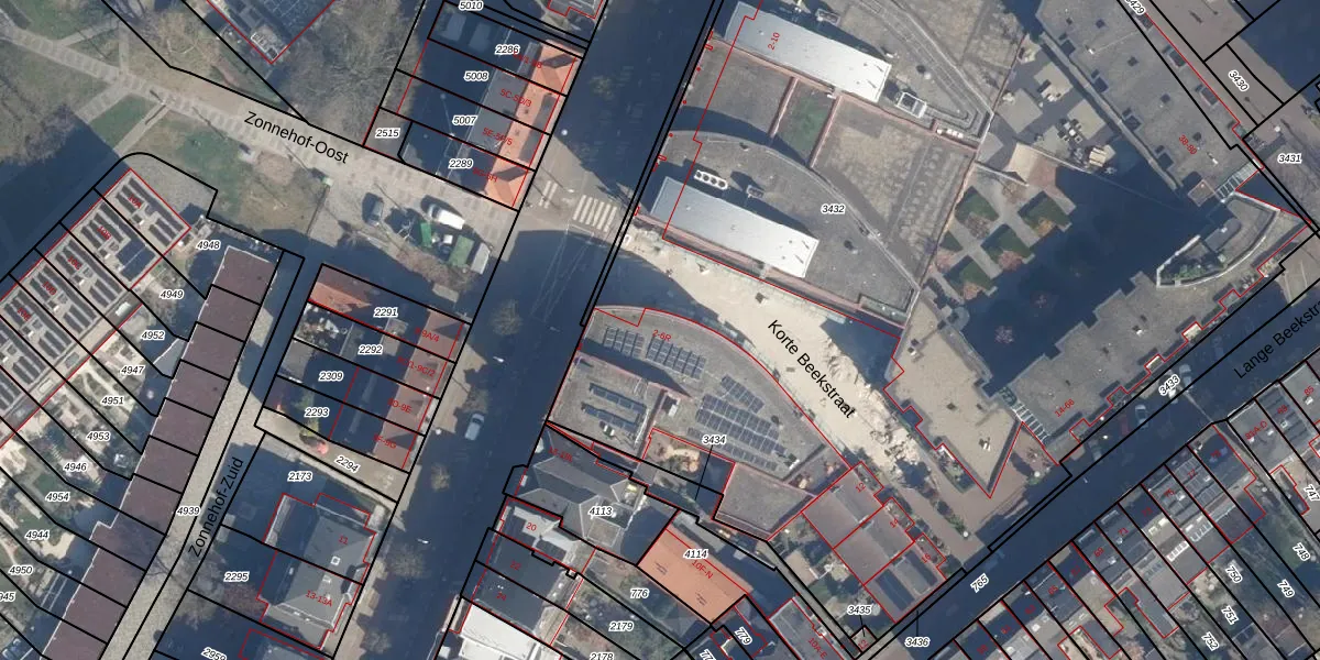 Het perceel waarop Korte Beekstraat 4-M staat heeft een oppervlakte van 8194 m². Dit is een zeer groot perceel. De perceeloppervlakte wordt geregistreerd door het Kadaster. Gedetailleerde informatie over de maten van dit perceel kunt u vinden in het rapport Kadastrale kaart met maatvoering van Korte Beekstraat 4-M.