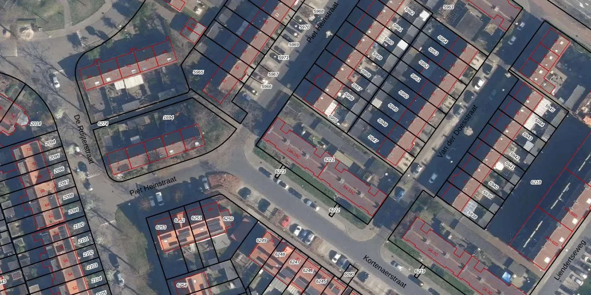 Het perceel waarop Kortenaerstraat 15-C staat heeft een oppervlakte van 971 m². Dit is een groot perceel. De perceeloppervlakte wordt geregistreerd door het Kadaster. Gedetailleerde informatie over de maten van dit perceel kunt u vinden in het rapport Kadastrale kaart met maatvoering van Kortenaerstraat 15-C.