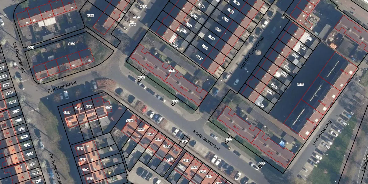 Het perceel waarop Kortenaerstraat 9-A staat heeft een oppervlakte van 971 m². Dit is een groot perceel. De perceeloppervlakte wordt geregistreerd door het Kadaster. Gedetailleerde informatie over de maten van dit perceel kunt u vinden in het rapport Kadastrale kaart met maatvoering van Kortenaerstraat 9-A.