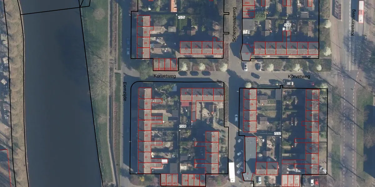 Korvetweg 8 is gelegen op kadastraal perceel AMF00A7108. Deze kadastrale aanduiding is uniek en wordt gebruikt door het Kadaster om eigendomsrechten en andere zakelijke rechten vast te leggen. Het perceel maakt onderdeel uit van de kadastrale gemeente Amersfoort.