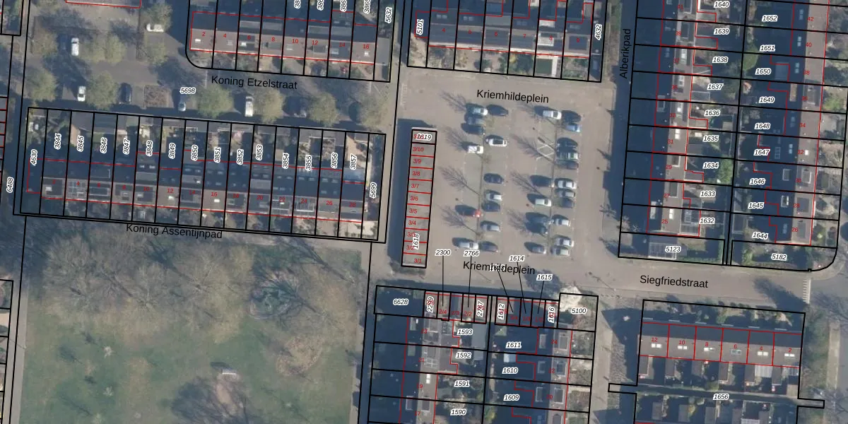Kriemhildeplein 3-5 is gelegen op kadastraal perceel AMF00K1618. Deze kadastrale aanduiding is uniek en wordt gebruikt door het Kadaster om eigendomsrechten en andere zakelijke rechten vast te leggen. Het perceel maakt onderdeel uit van de kadastrale gemeente Amersfoort.