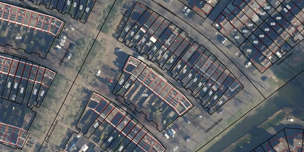 Het perceel waarop Kuifvlinder 13 staat heeft een oppervlakte van 1040 m². Dit is een zeer groot perceel. De perceeloppervlakte wordt geregistreerd door het Kadaster. Gedetailleerde informatie over de maten van dit perceel kunt u vinden in het rapport Kadastrale kaart met maatvoering van Kuifvlinder 13.