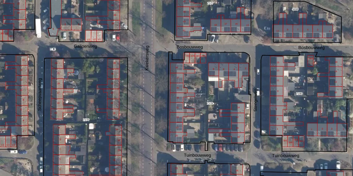 Het perceel waarop Kwekersweg 35 staat heeft een oppervlakte van 2370 m². Dit is een zeer groot perceel. De perceeloppervlakte wordt geregistreerd door het Kadaster. Gedetailleerde informatie over de maten van dit perceel kunt u vinden in het rapport Kadastrale kaart met maatvoering van Kwekersweg 35.