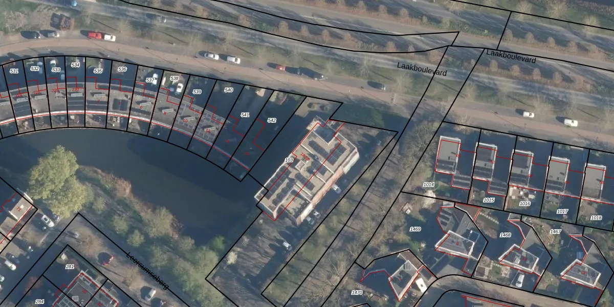Laakboulevard 26 is gelegen op kadastraal perceel HLD02O103. Deze kadastrale aanduiding is uniek en wordt gebruikt door het Kadaster om eigendomsrechten en andere zakelijke rechten vast te leggen. Het perceel maakt onderdeel uit van de kadastrale gemeente Hoogland.