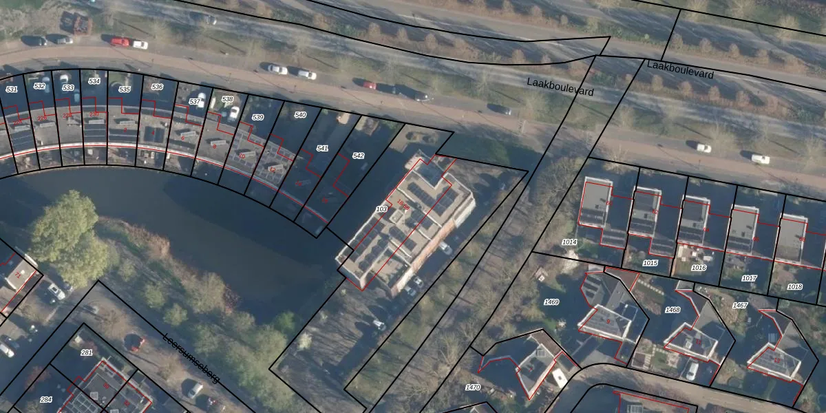 Het perceel waarop Laakboulevard 56 staat heeft een oppervlakte van 1730 m². Dit is een zeer groot perceel. De perceeloppervlakte wordt geregistreerd door het Kadaster. Gedetailleerde informatie over de maten van dit perceel kunt u vinden in het rapport Kadastrale kaart met maatvoering van Laakboulevard 56.