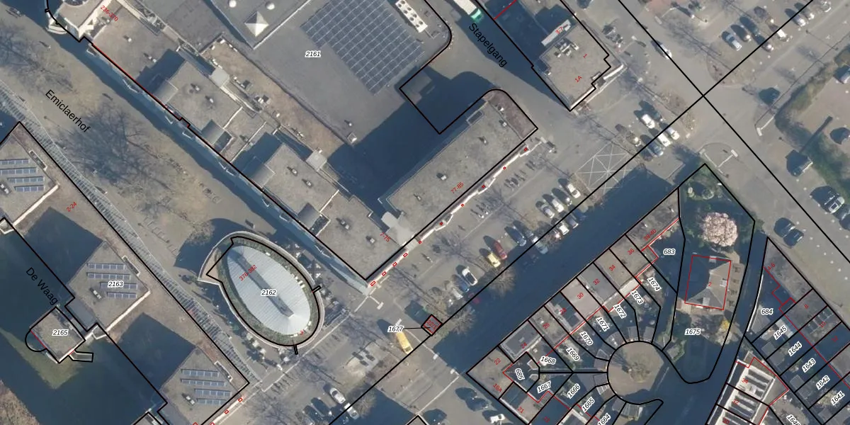 Het perceel waarop het adres ligt is AMF00-O-2161. De afkorting 'AMF00' staat voor kadastrale gemeente Amersfoort. De gemiddelde perceeloppervlakte in de kadastrale gemeente Amersfoort is 959,94 m². Dit perceel is met zijn 5955 m² dus groter dan gemiddeld. Het kleinste perceel in de kadastrale gemeente is 0 m² groot. De grootste perceeloppervlakte is 1,12 km². Op het perceel liggen in totaal 91 adressen. De huidige grenzen van het perceel zijn digitaal in de Basisregistratie Kadaster (BRK) geregistreerd op 02-03-2009.