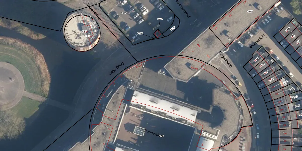 Het perceel waarop Lage Boog 104 staat heeft een oppervlakte van 8347 m². Dit is een zeer groot perceel. De perceeloppervlakte wordt geregistreerd door het Kadaster. Gedetailleerde informatie over de maten van dit perceel kunt u vinden in het rapport Kadastrale kaart met maatvoering van Lage Boog 104.
