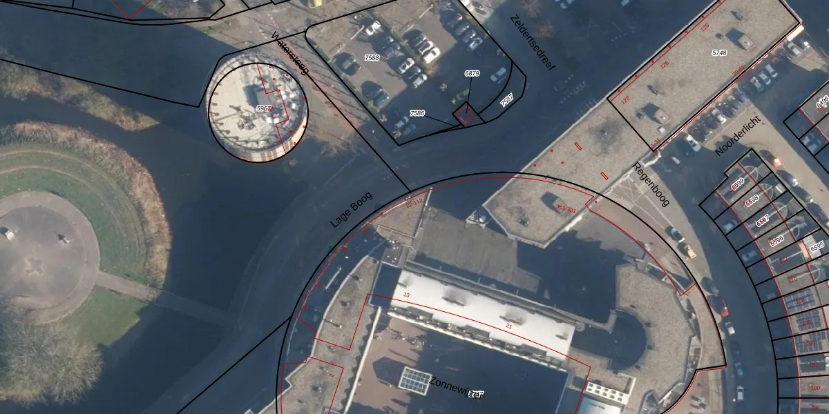 Het perceel waarop Lage Boog 40 staat heeft een oppervlakte van 8347 m². Dit is een zeer groot perceel. De perceeloppervlakte wordt geregistreerd door het Kadaster. Gedetailleerde informatie over de maten van dit perceel kunt u vinden in het rapport Kadastrale kaart met maatvoering van Lage Boog 40.