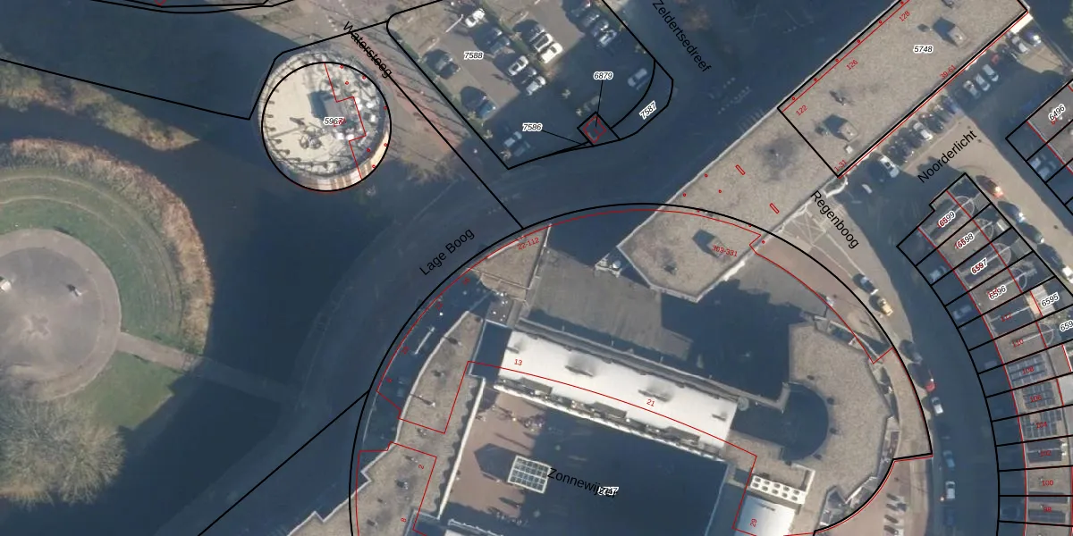 Het perceel waarop Lage Boog 44 staat heeft een oppervlakte van 8347 m². Dit is een zeer groot perceel. De perceeloppervlakte wordt geregistreerd door het Kadaster. Gedetailleerde informatie over de maten van dit perceel kunt u vinden in het rapport Kadastrale kaart met maatvoering van Lage Boog 44.