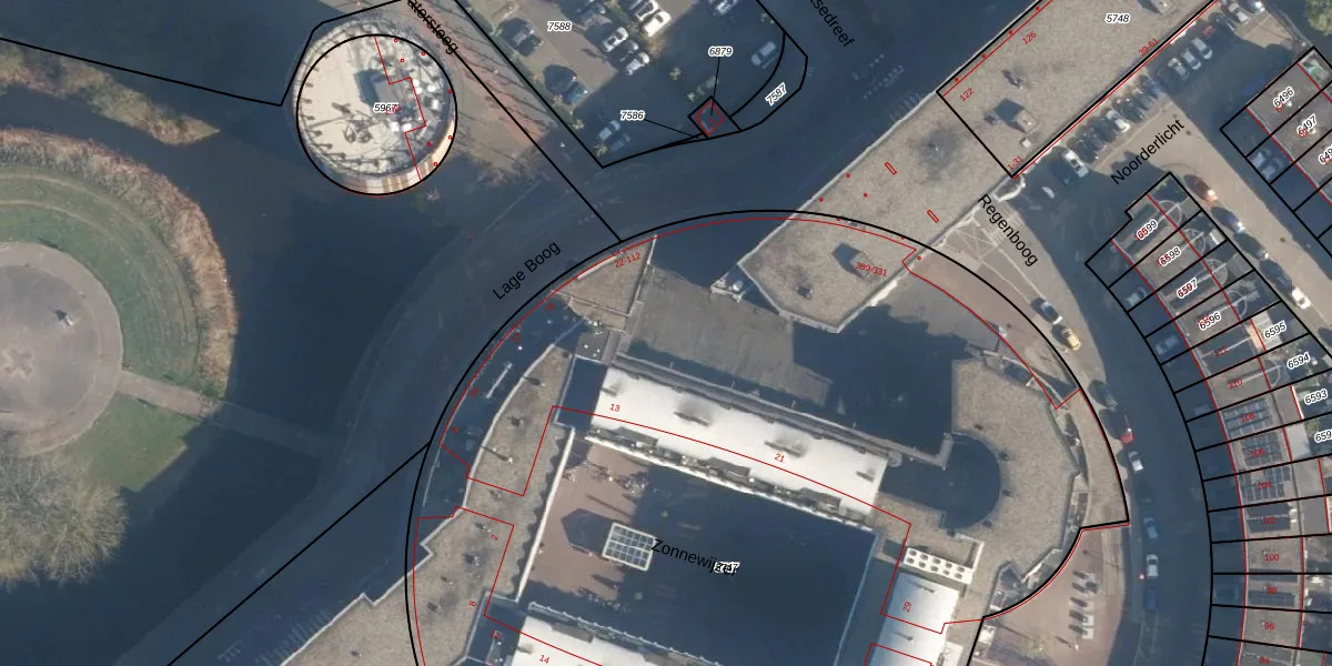 Het perceel waarop Lage Boog 70 staat heeft een oppervlakte van 8347 m². Dit is een zeer groot perceel. De perceeloppervlakte wordt geregistreerd door het Kadaster. Gedetailleerde informatie over de maten van dit perceel kunt u vinden in het rapport Kadastrale kaart met maatvoering van Lage Boog 70.
