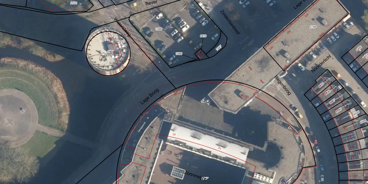 Het perceel waarop Lage Boog 76 staat heeft een oppervlakte van 8347 m². Dit is een zeer groot perceel. De perceeloppervlakte wordt geregistreerd door het Kadaster. Gedetailleerde informatie over de maten van dit perceel kunt u vinden in het rapport Kadastrale kaart met maatvoering van Lage Boog 76.
