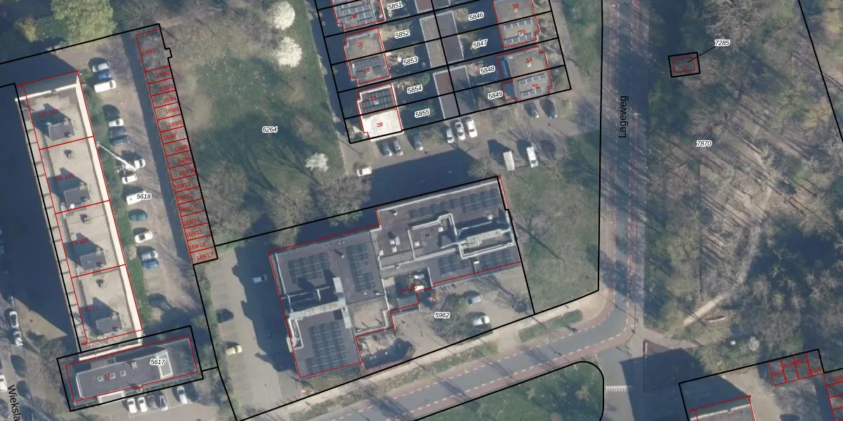 Lageweg 18-B is gelegen op kadastraal perceel AMF00A5962. Deze kadastrale aanduiding is uniek en wordt gebruikt door het Kadaster om eigendomsrechten en andere zakelijke rechten vast te leggen. Het perceel maakt onderdeel uit van de kadastrale gemeente Amersfoort.