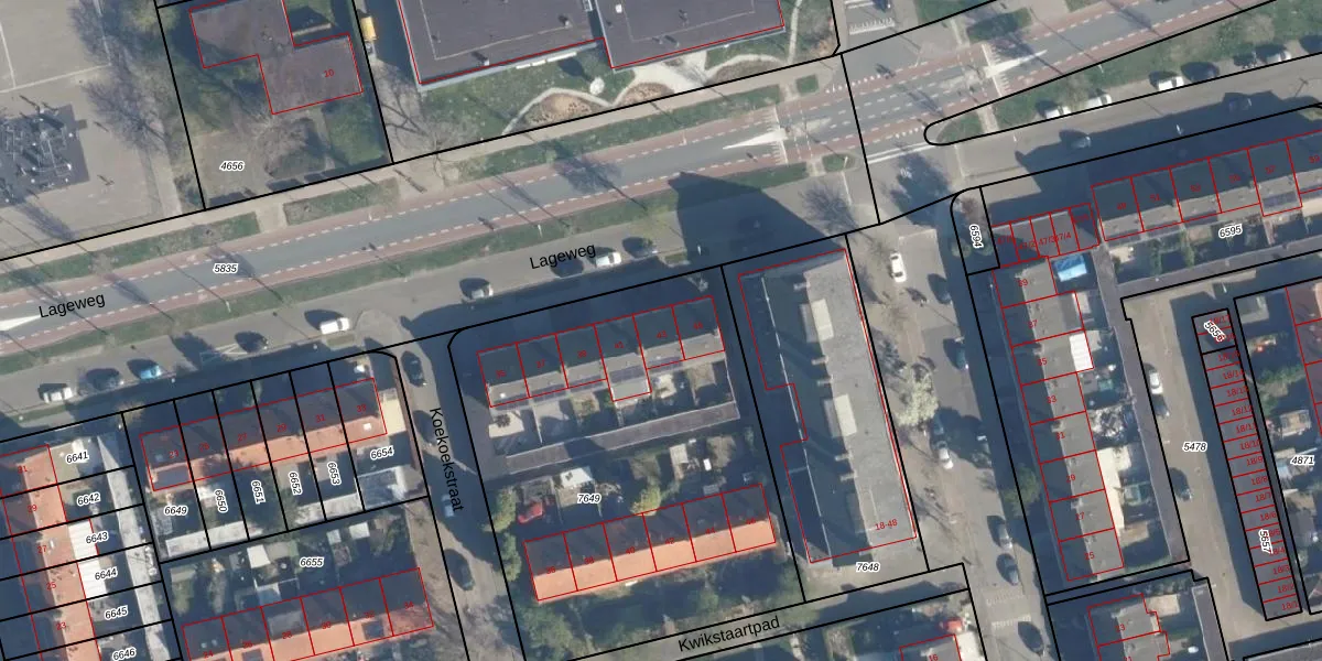 Het perceel waarop Lageweg 43 staat heeft een oppervlakte van 2265 m². Dit is een zeer groot perceel. De perceeloppervlakte wordt geregistreerd door het Kadaster. Gedetailleerde informatie over de maten van dit perceel kunt u vinden in het rapport Kadastrale kaart met maatvoering van Lageweg 43.