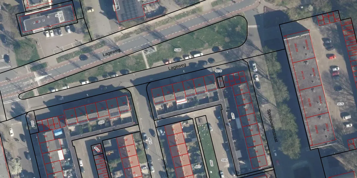 Het perceel waarop Lageweg 65 staat heeft een oppervlakte van 2093 m². Dit is een zeer groot perceel. De perceeloppervlakte wordt geregistreerd door het Kadaster. Gedetailleerde informatie over de maten van dit perceel kunt u vinden in het rapport Kadastrale kaart met maatvoering van Lageweg 65.
